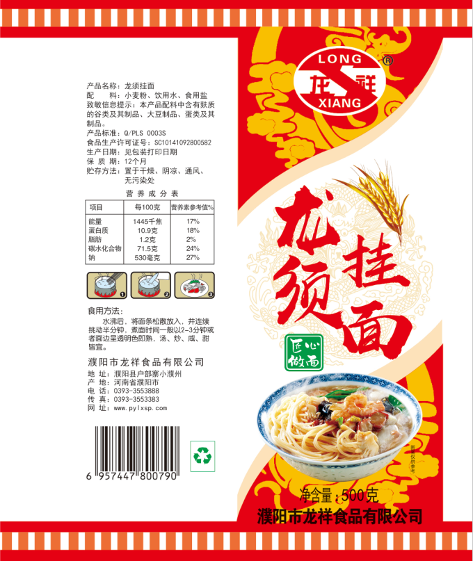 2012年又投資800萬元新建掛面生產(chǎn)線一條,日產(chǎn)掛面50噸。